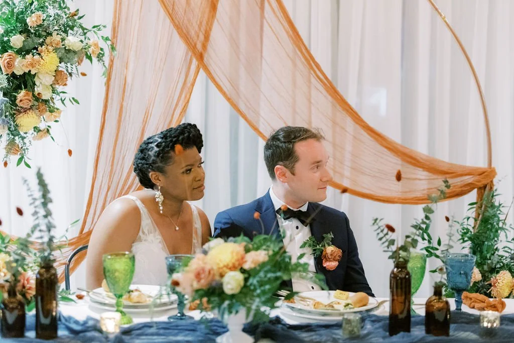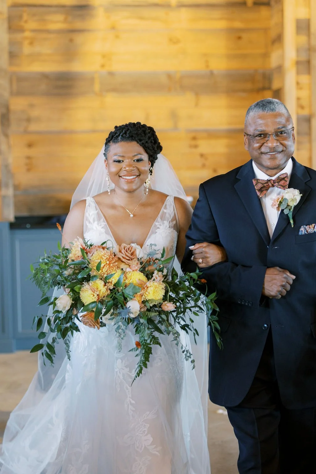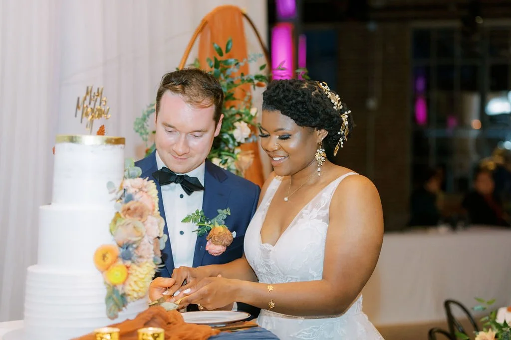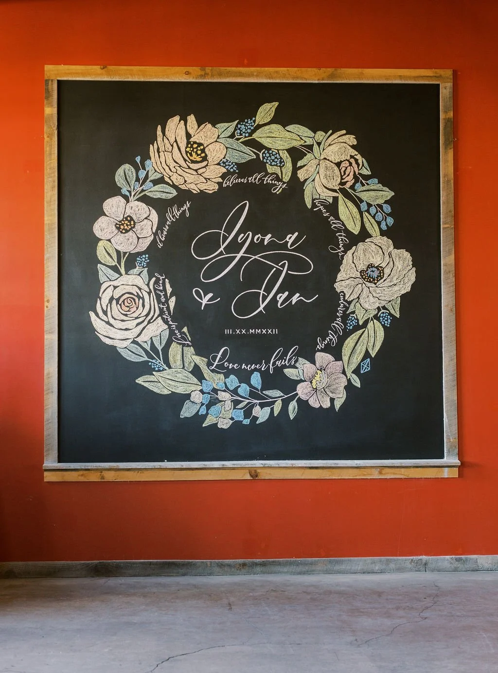 Photographer: Koral Bleu Photography // Planning & Florals: Daisy by Design Events // Caterer: Rocky Top Catering // Rentals: Curated Events Raleigh, Greenhouse Picker Sisters // Entertainment: Ebenezer Doval // Cake: Cakes by Mabel // Chalk Art: Marika Wendelken Calligraphy // Draping: Themeworks // Hair: Salon Purity // Makeup: Makeup by Luz