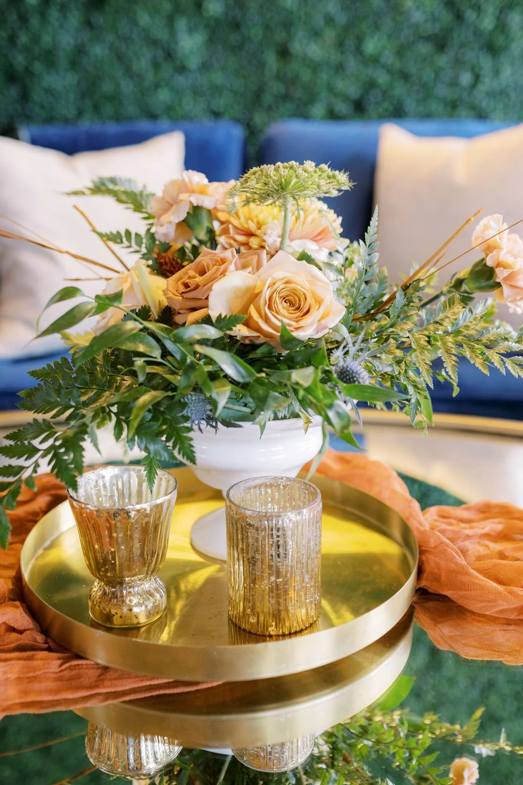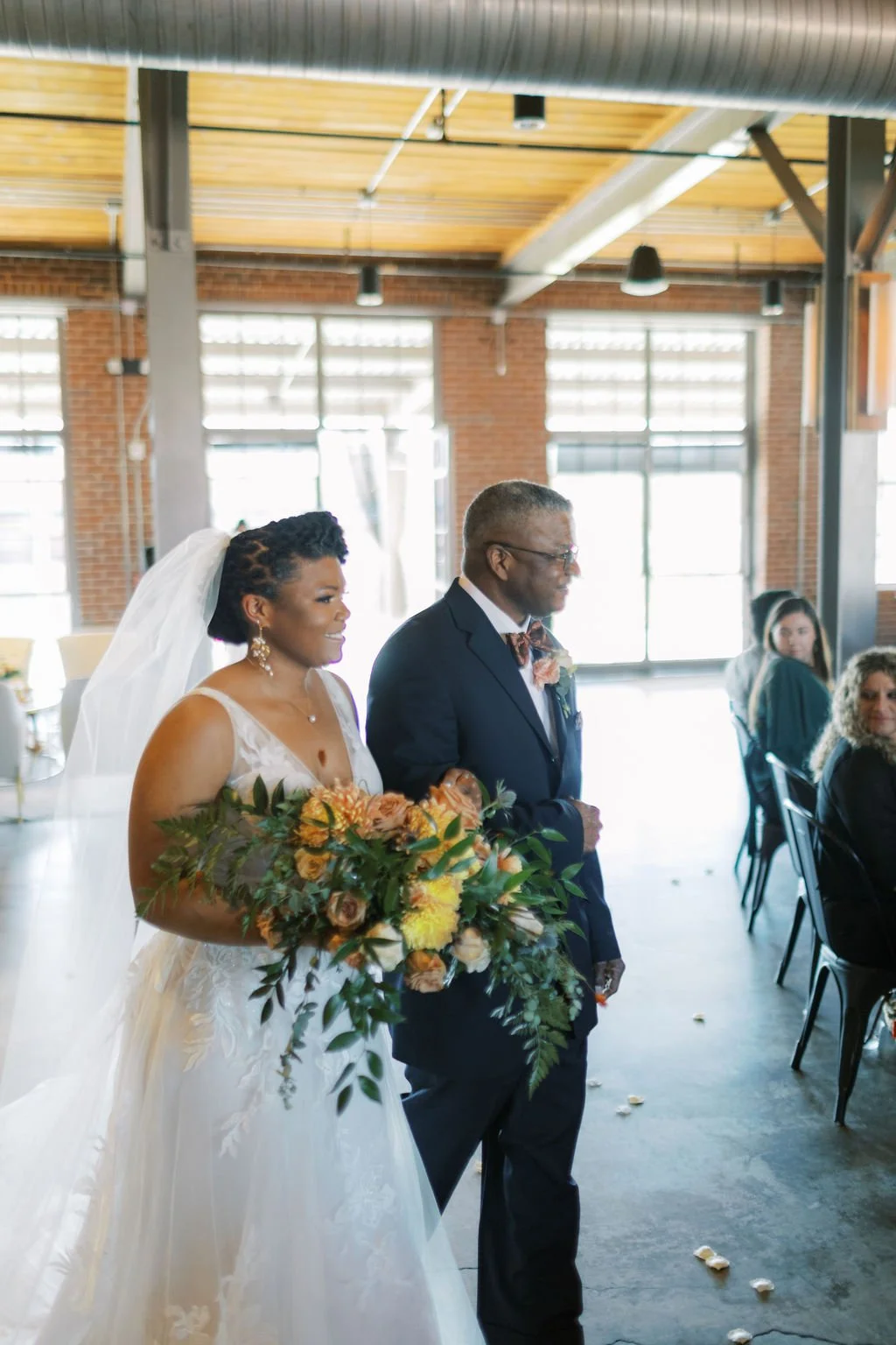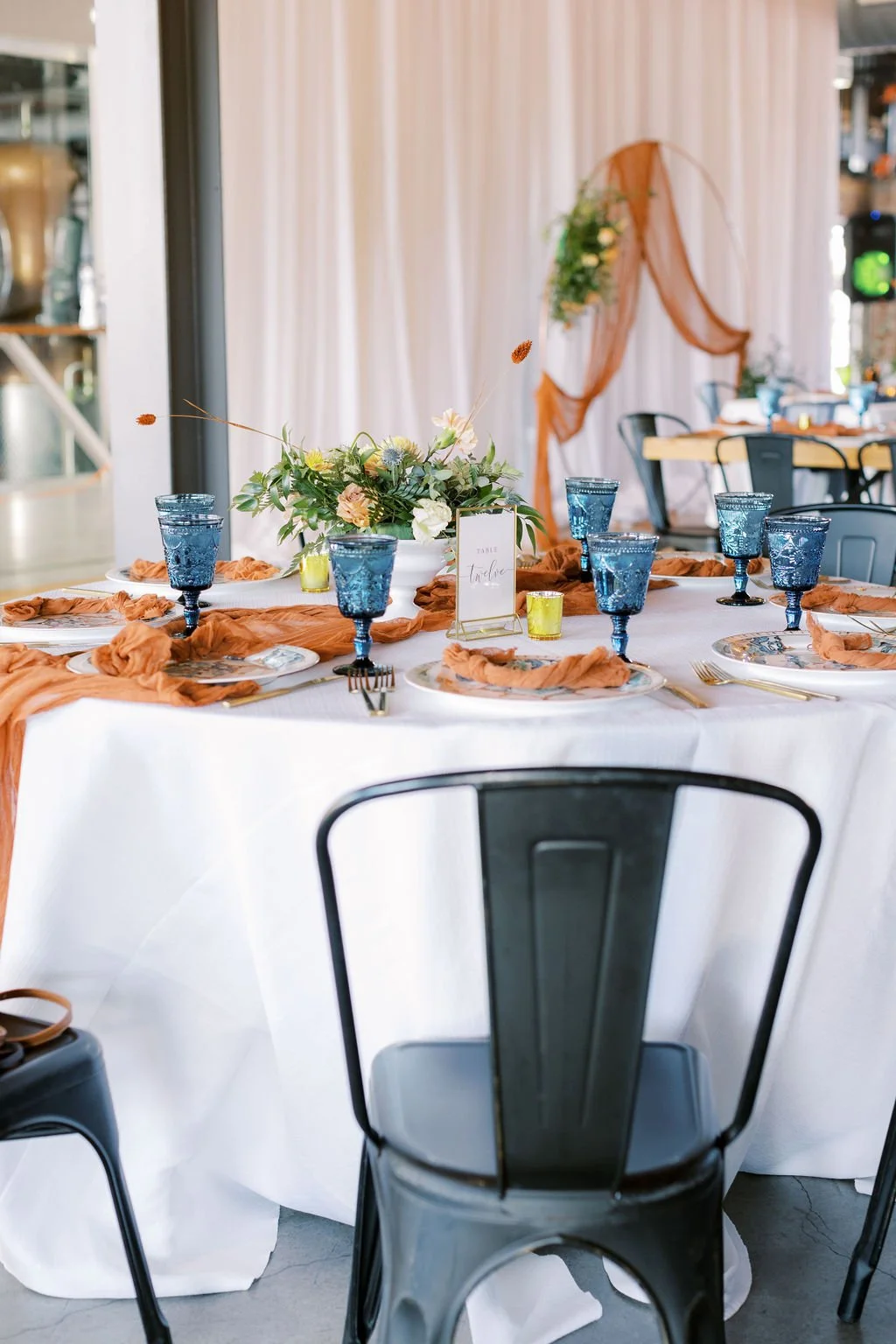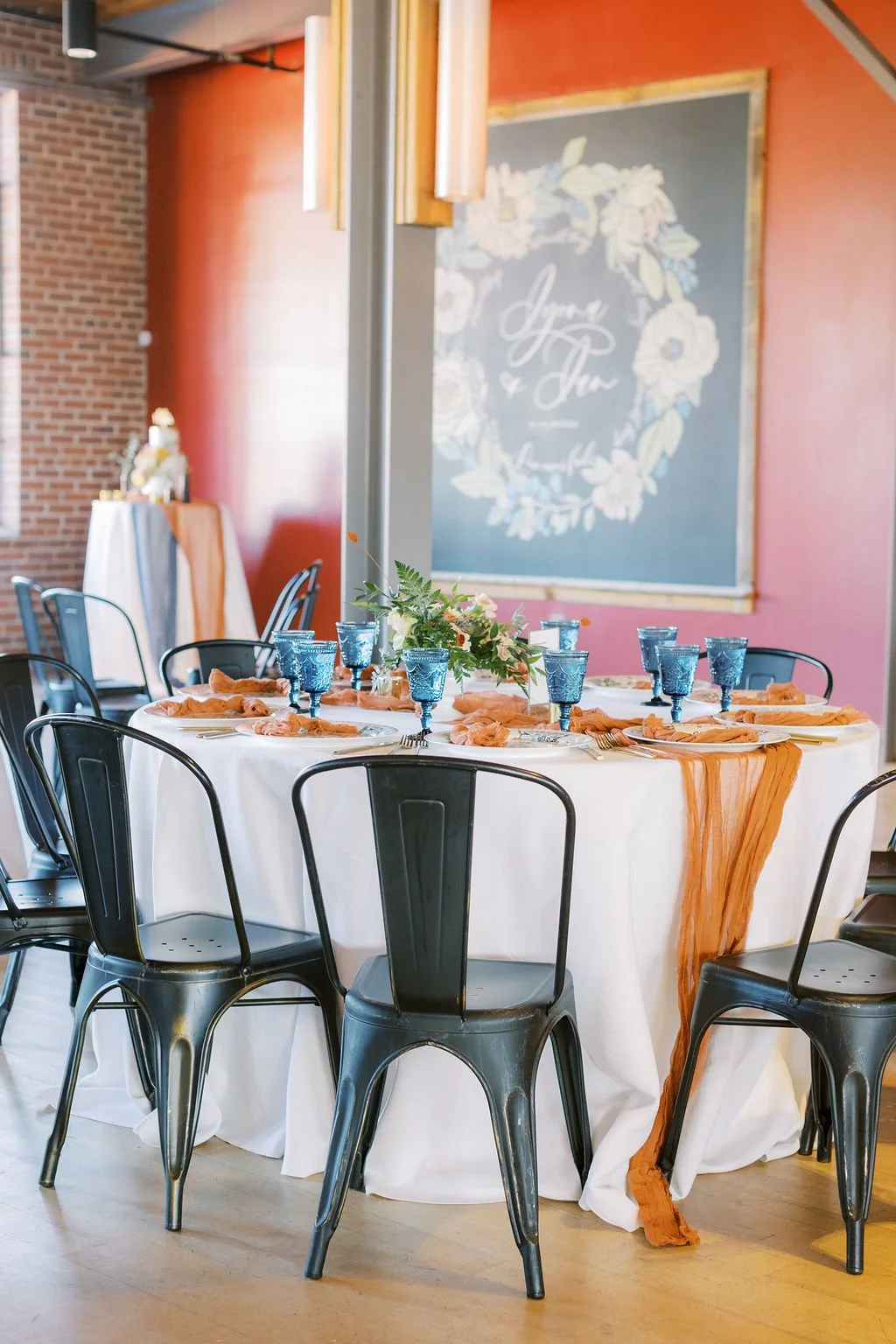 Photographer: Koral Bleu Photography // Planning & Florals: Daisy by Design Events // Caterer: Rocky Top Catering // Rentals: Curated Events Raleigh, Greenhouse Picker Sisters // Entertainment: Ebenezer Doval // Cake: Cakes by Mabel // Chalk Art: Marika Wendelken Calligraphy // Draping: Themeworks // Hair: Salon Purity // Makeup: Makeup by Luz