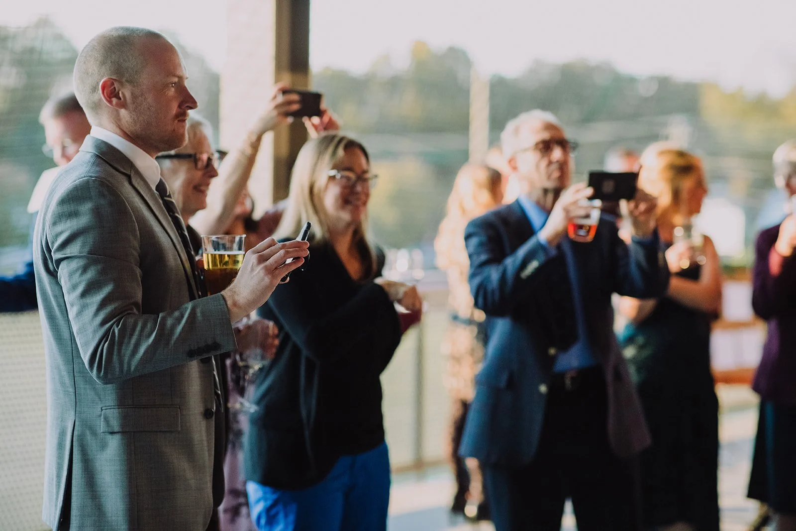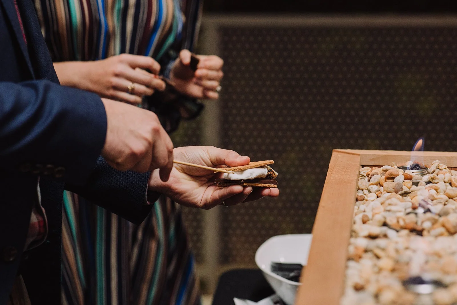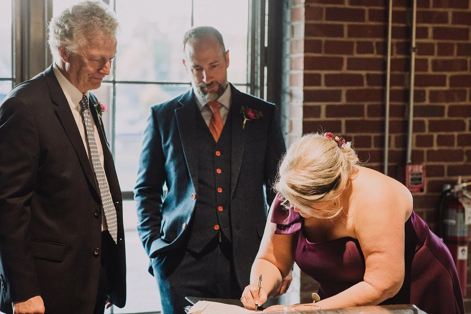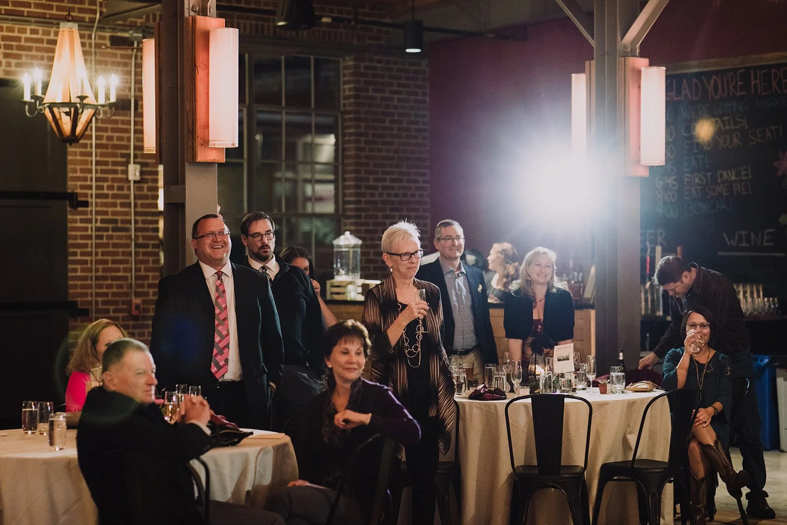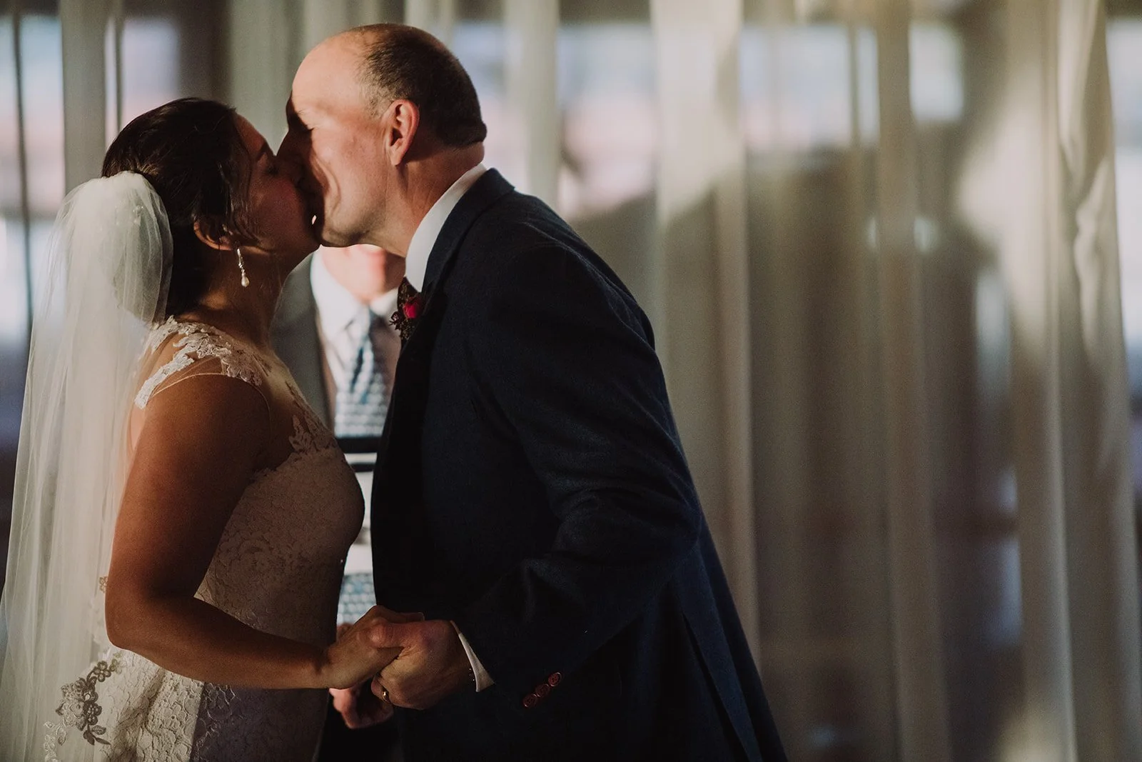 This gorgeous autumn day was the perfect day for this celebration of love. If we took anything away from this magical ceremony and reception, it's that this marriage is more than just the "I Do's." It's dancing in the kitchen, millions of small yet cherished moments, the merging of families, and a life full of building on the love that surrounds you. These two tied the knot in a sweet ceremony before transforming the grand room into the ultimate wedding reception, complete with a photo booth, a s'mores station on the balcony, and some good old fashioned competition with corn hole. After lots of fun and dancing, everyone continued the celebration a few doors down at the local barcade, revisiting arcade nostalgia of their youth. Congrats to these two newlyweds in love!