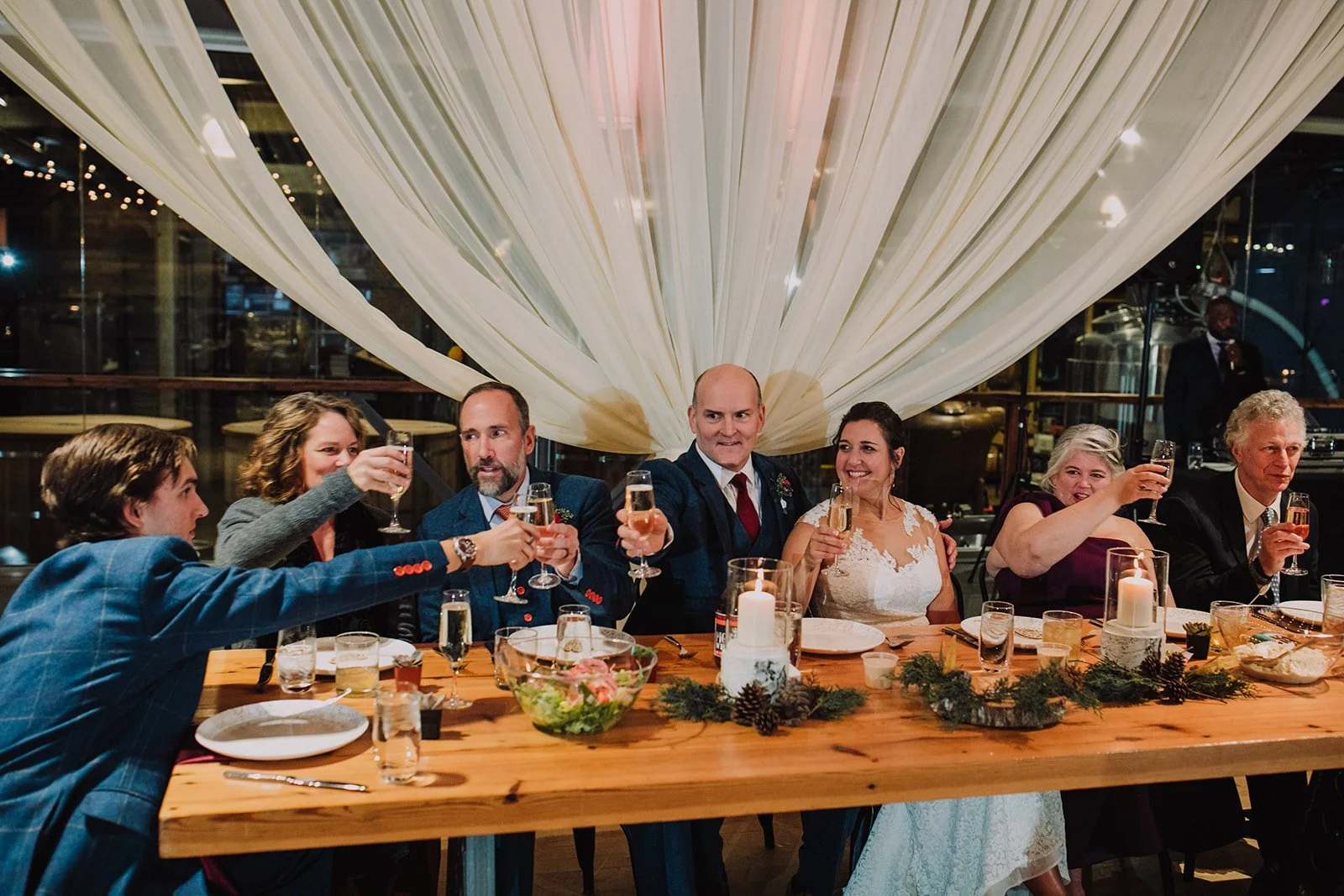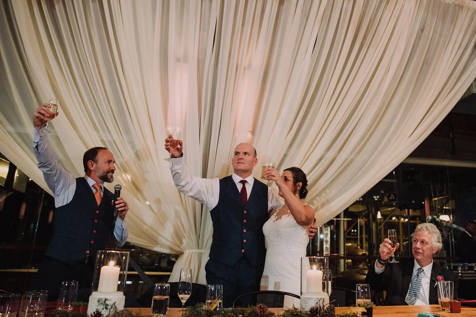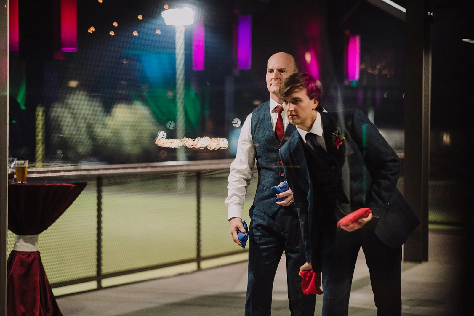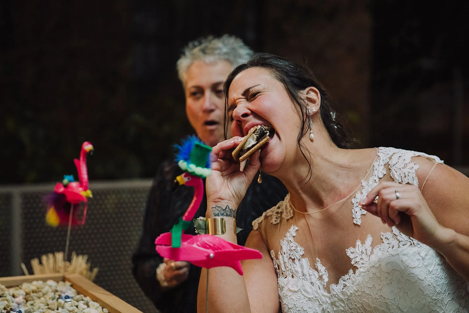 This gorgeous autumn day was the perfect day for this celebration of love. If we took anything away from this magical ceremony and reception, it's that this marriage is more than just the "I Do's." It's dancing in the kitchen, millions of small yet cherished moments, the merging of families, and a life full of building on the love that surrounds you. These two tied the knot in a sweet ceremony before transforming the grand room into the ultimate wedding reception, complete with a photo booth, a s'mores station on the balcony, and some good old fashioned competition with corn hole. After lots of fun and dancing, everyone continued the celebration a few doors down at the local barcade, revisiting arcade nostalgia of their youth. Congrats to these two newlyweds in love!